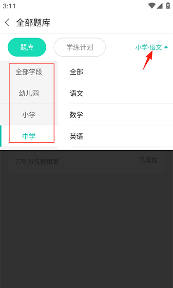 2、右上角切换年级/科目。