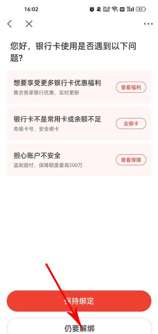 4、然后点击下方的我要解绑银行卡,点击进入解绑页面。