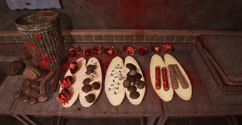 使用僵尸的肢体和从市场购买的食材准备餐点!