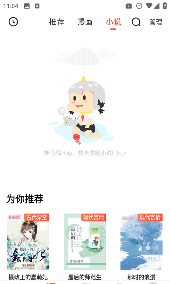 3、点击上方“漫画”或“小说”栏目,挑选喜欢的作品。