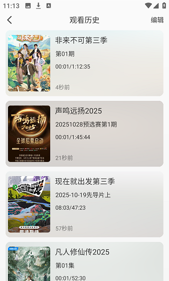 5、还有观看历史,可以随之跟随之前看到的地方继续观看。