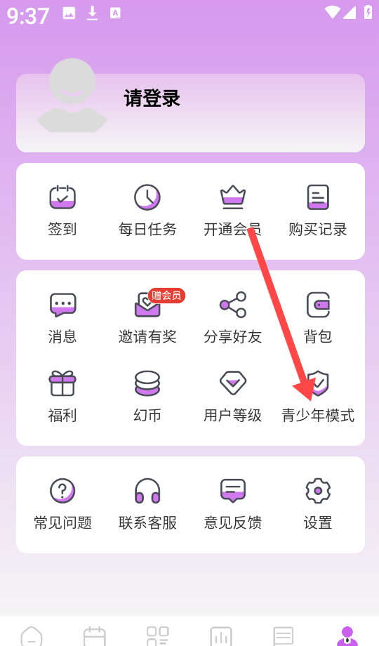 4、点击“我的”,可设置个人信息或开启青少年模式。