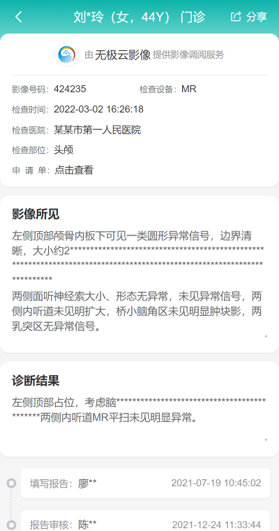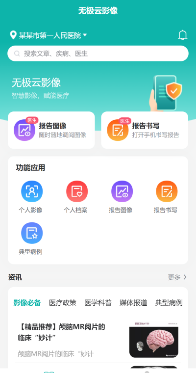 1、进入无极云影像,选医院,用搜索找患者影像,查CT、MRI等检查结果及报告。