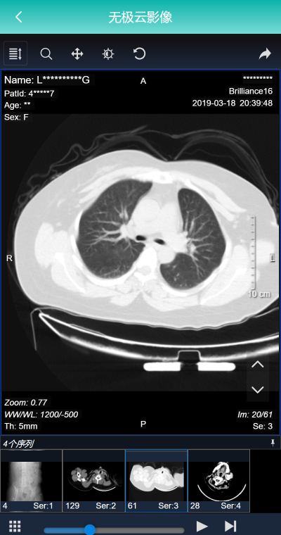 2、打开患者影像详情,浏览影像图片,切换序列,结合诊断结果,辅助病情判断。