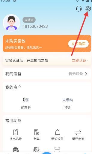 2、在个人中心页,点击页面右上角的设置图标,进入设置页。