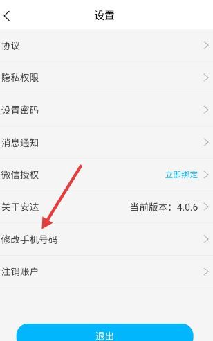 3、在设置页,找到【修改手机号码】,点击进入号码修改页。