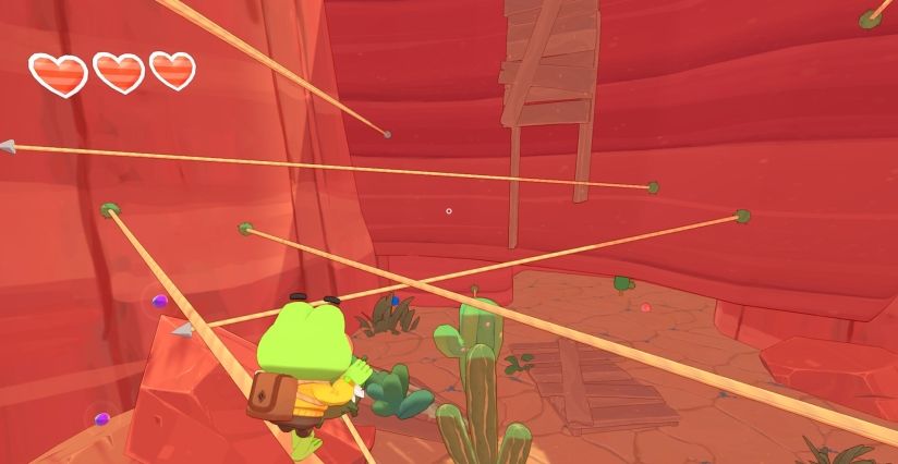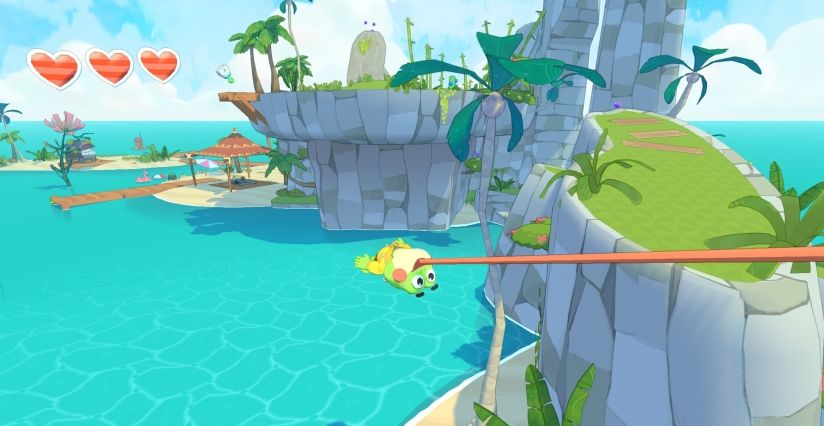2、BIG HOPS的核心机制是霍普那条用途广泛的青蛙舌头!它既可爱又逗趣,为这款动作+解谜+平台游戏注入了意想不到的新鲜感。