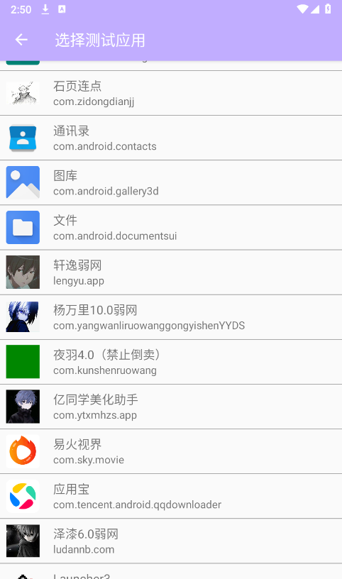 3、选出你要进行弱网测试的应用进行弱网测试即可。