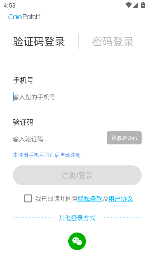3、在验证码登录界面,您可以输入您的电话号码和验证码,然后单击“注册/登录”按钮一键登录。