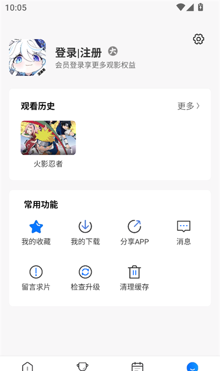 7、在我的界面下,我们可以进行软件注册登录操作,能够享受到更多的观影权益。
