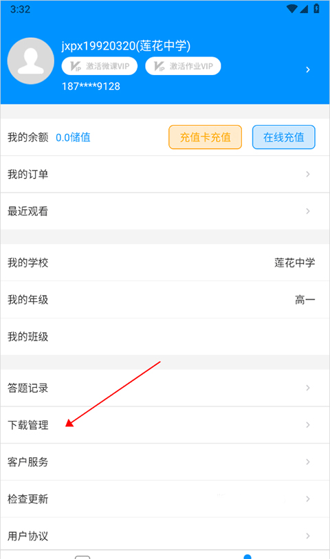 3、下载后,转到我的页面,点击“下载管理”(如下图中红色箭头所示)。