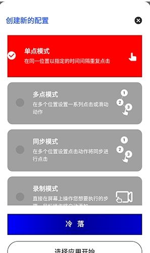 2、选择要使用的点击模式,点击需要应用到的应用。