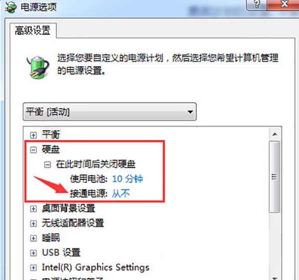 关闭硬盘休眠以防止下载程序停止
