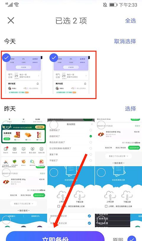 2、选择右下角的“照片”选项,检查所需的照片,然后单击“立即备份”。