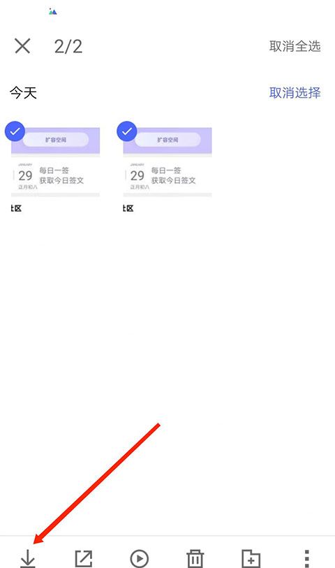 5、选择已备份在旧手机上的照片,然后选择左下角的“下载”。