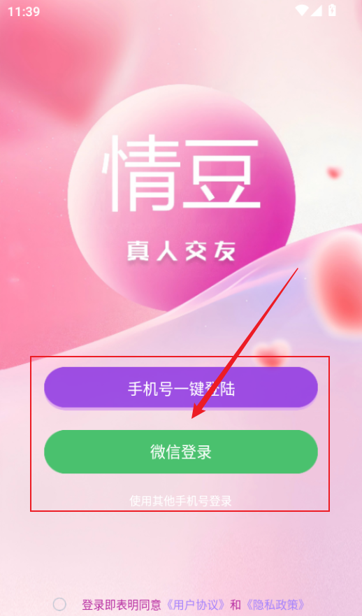 1、进入软件后,有三种方式可以登录,分别是手机号一键登录,微信登录、其他手机登录。