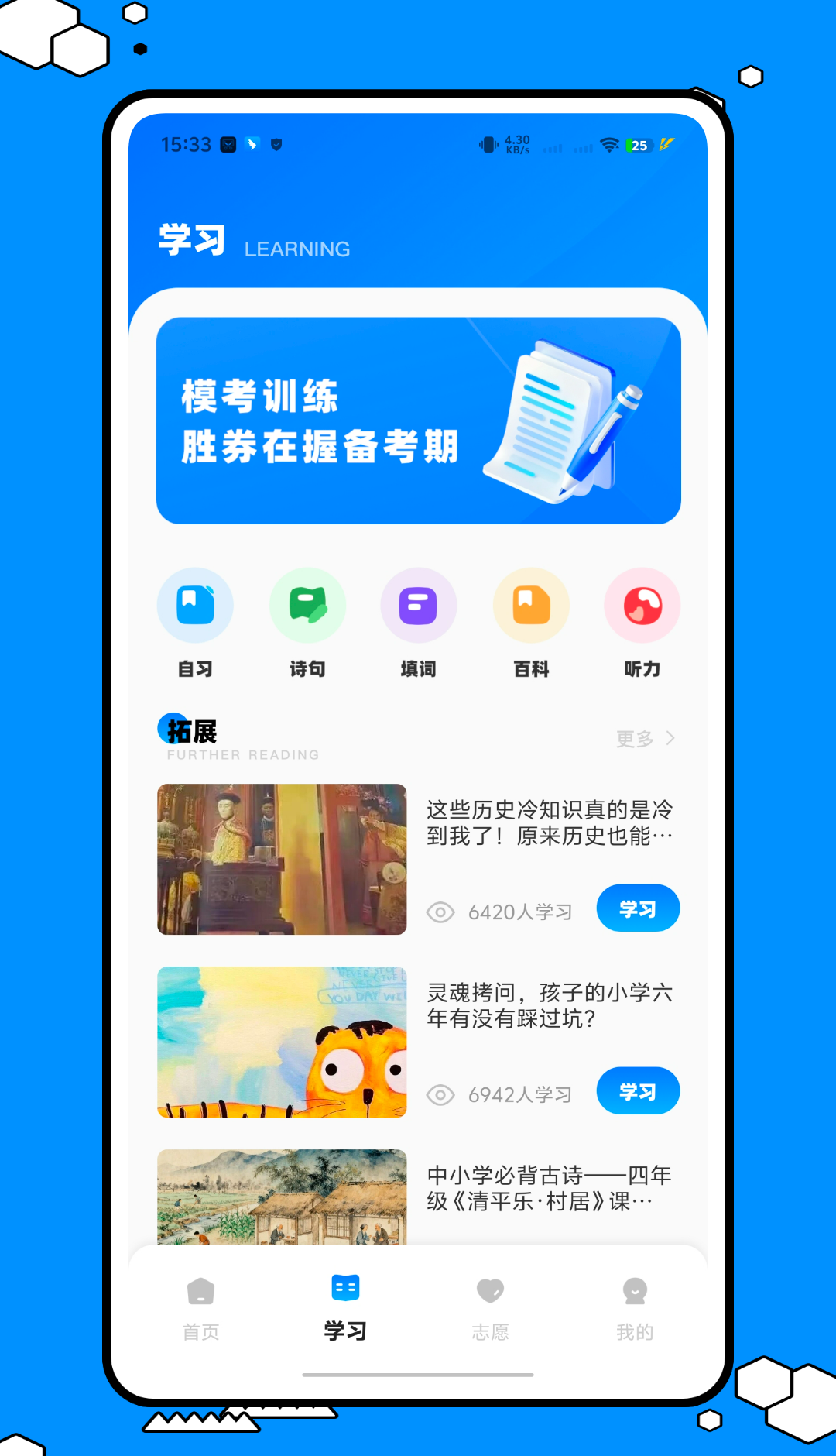 5、兴趣拓展场景参与诗句、填词、百科、普法课堂等兼顾学习与素养提升。
