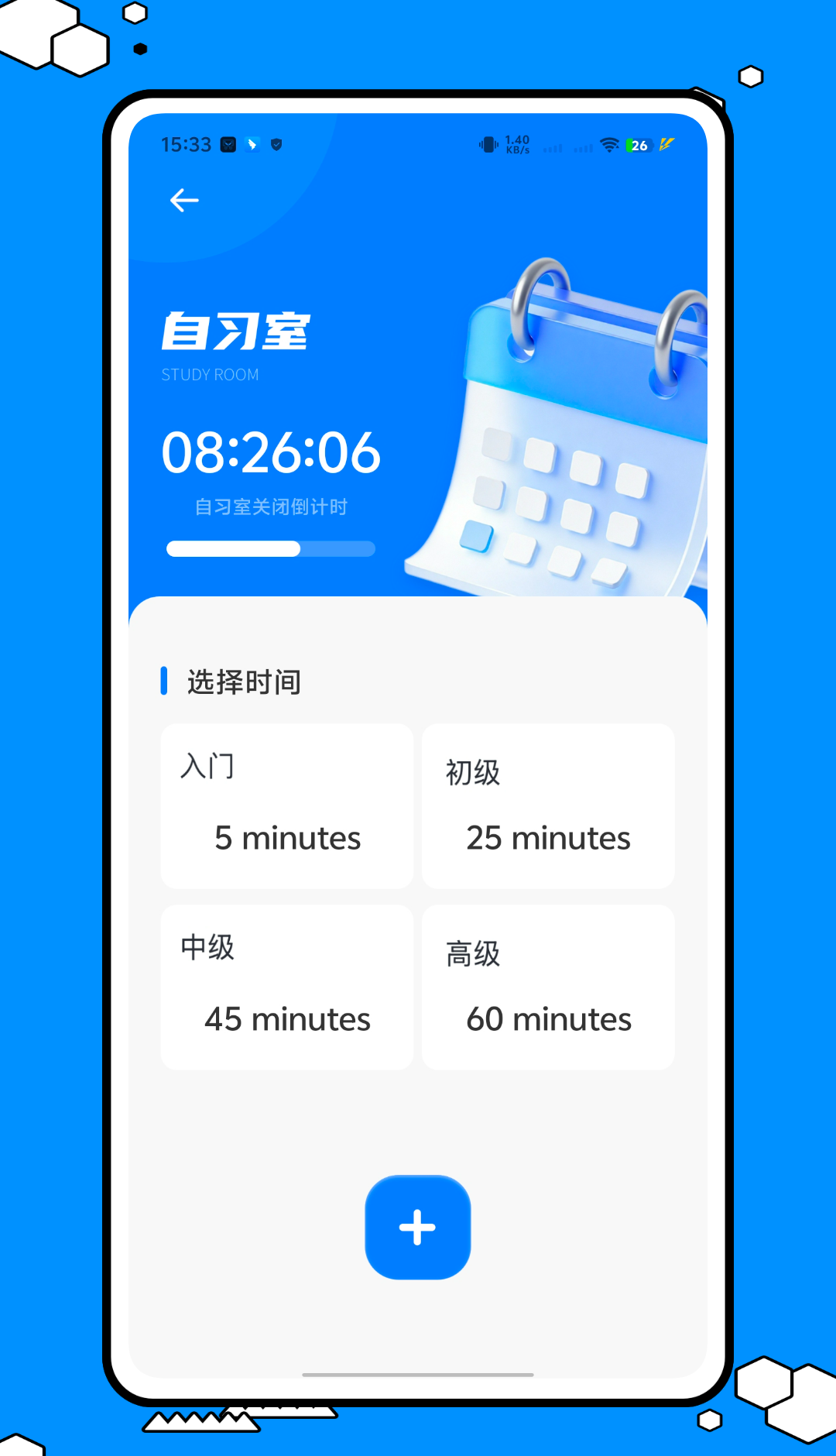4、自习室适配学习氛围支持自定义时长打造沉浸式学习环境培养专注习惯。