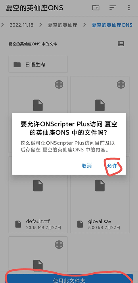 3、找到解压好的游戏文件夹,点击使用此文件夹,点允许。