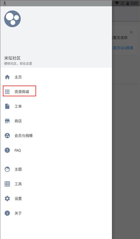 1、在下载资源包之前需要登录账号,然后再次点击左上角的三横图标并点击资源商城