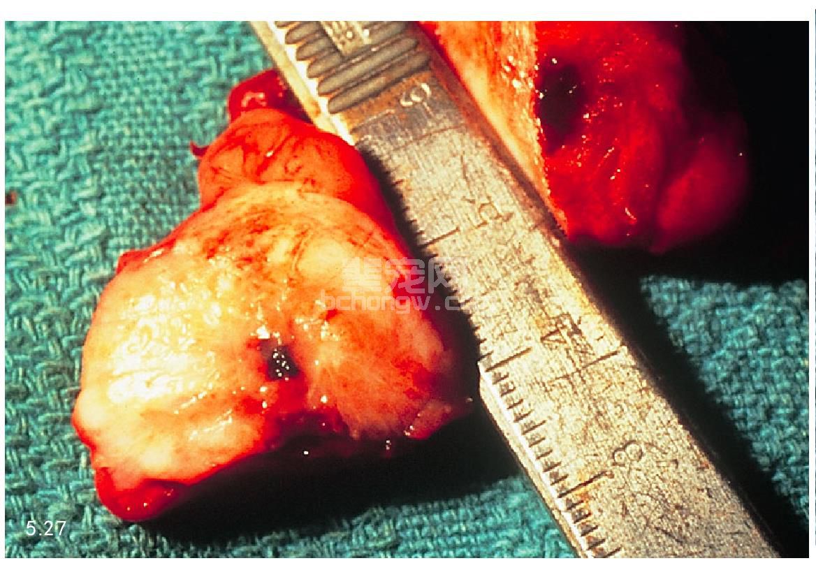 病因学 肾盂积水是由于尿液流出阻塞所致,在膀胱三角区、输尿管和肾盂处的肿瘤都会引起肾盂积水。输 尿管尿结石、先天性和获得性狭窄、错位缝合(通常在卵巢子宫切除术时容易发生)以及异物等都可导致本病 (图5.26和图5.27)。
