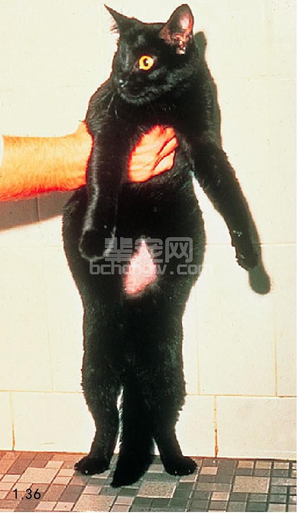 图1.36 2岁患积水性FIP猫的腹部增大。