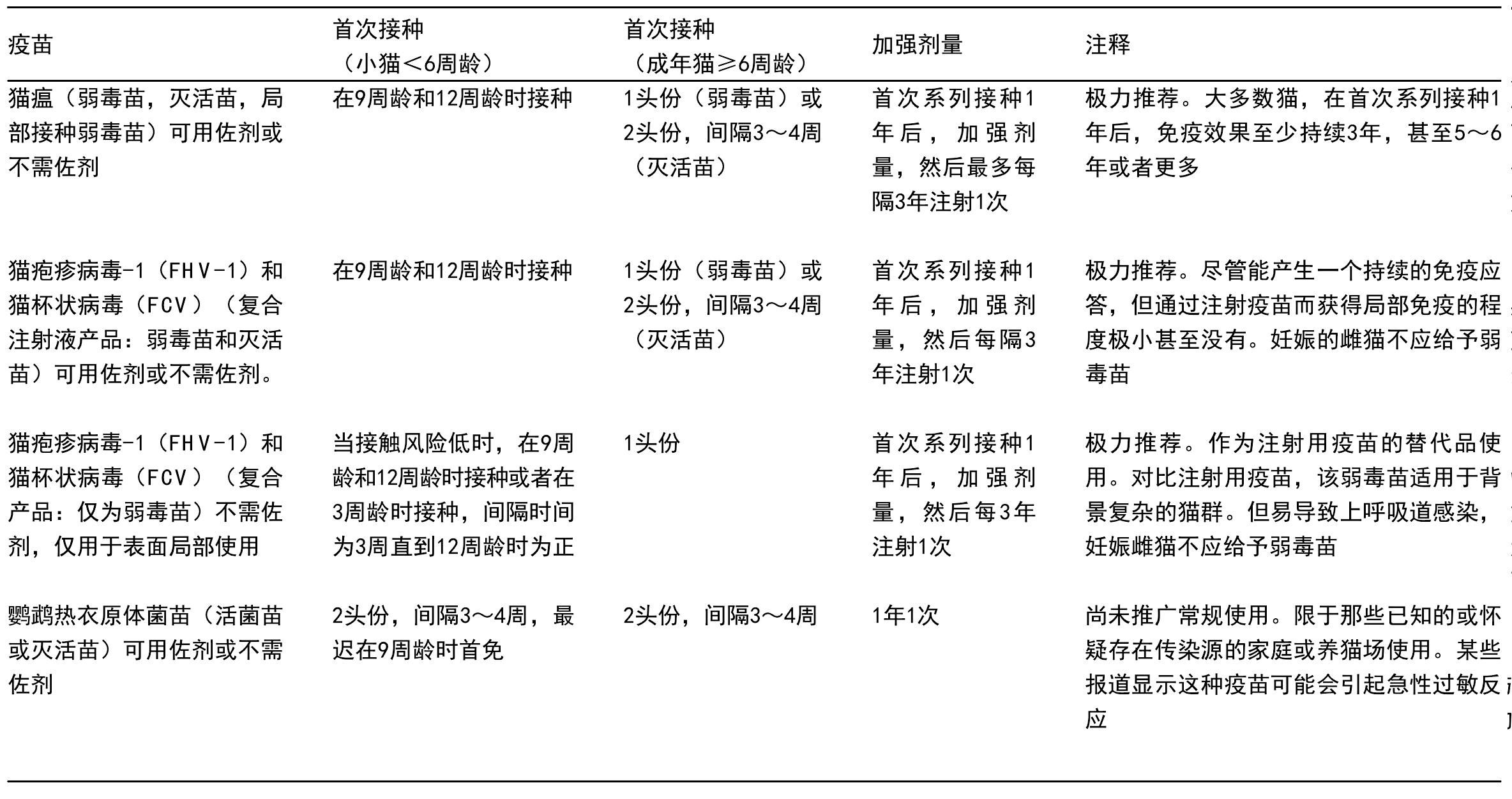 表1.4 猫疫苗抗原和接种方法的指导摘要
