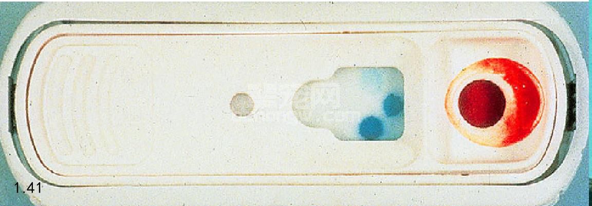 图1.41 对猫血浆进行ELISA检测,结果FeLV抗原反应呈阳性,FIV抗体 检测呈阴性。