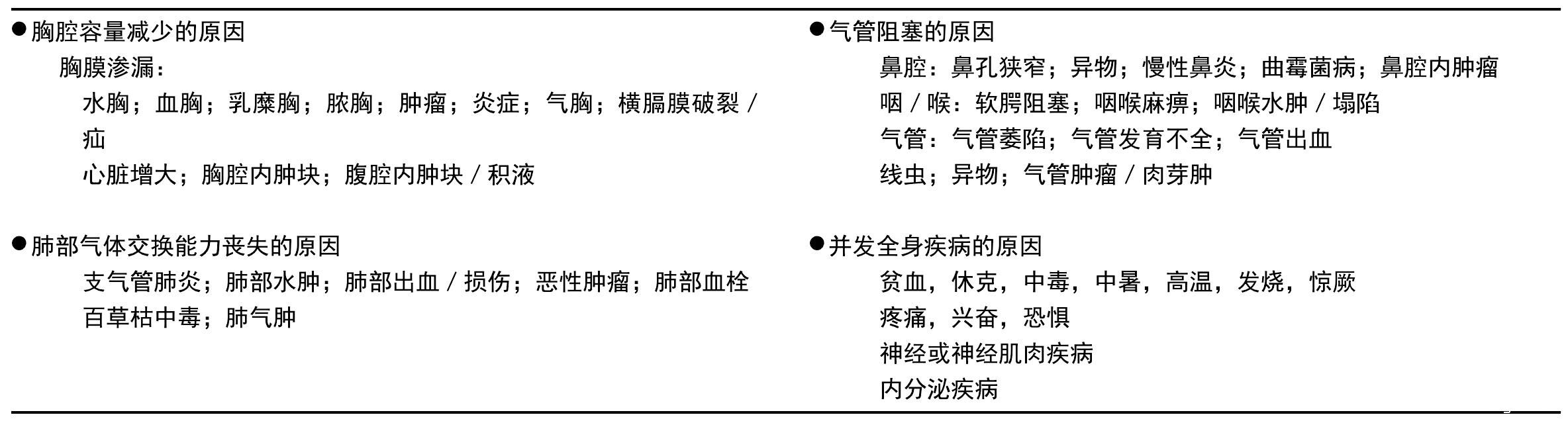 表2.9 呼吸困难和呼吸急促的鉴别诊断