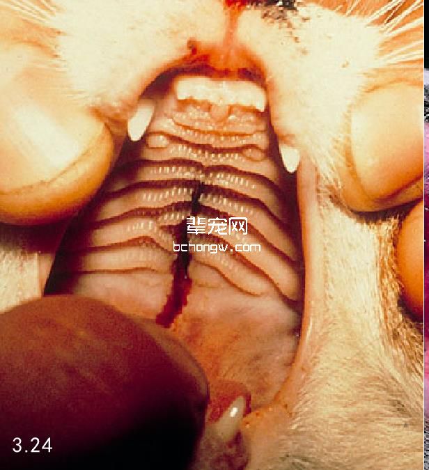 图3.24 猫“高空摔伤综合征”导致的硬腭裂。