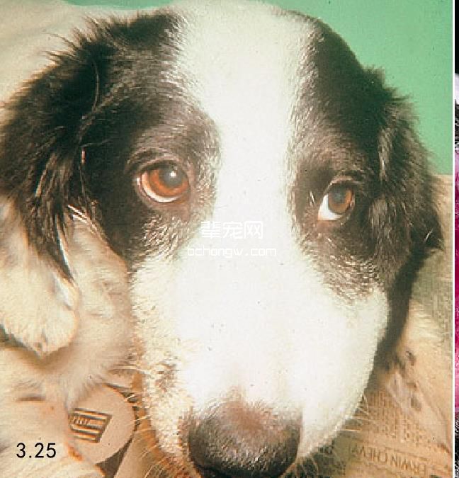 图3.25 幼犬啃咬电线电伤后造成的面部水肿。