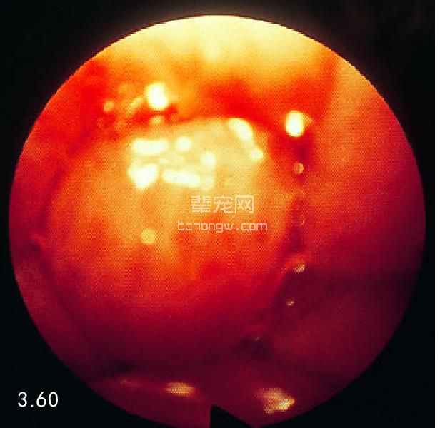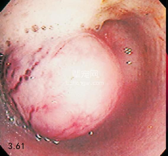图3.61 一只10岁德国牧羊犬食管内无症状的平滑肌瘤。