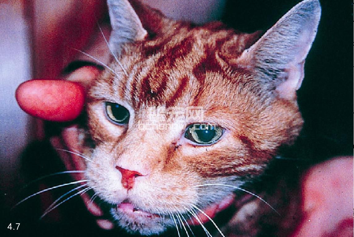 图4.7 14岁龄家养短毛猫患肢端肥大症,可见嘴鼻部增宽。