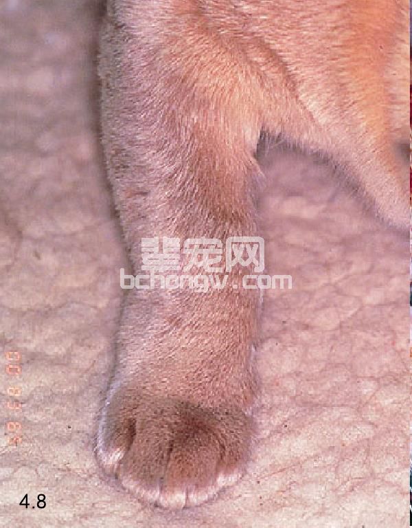 图4.8 9岁龄缅甸猫患肢端肥大症,表现爪部肿大。