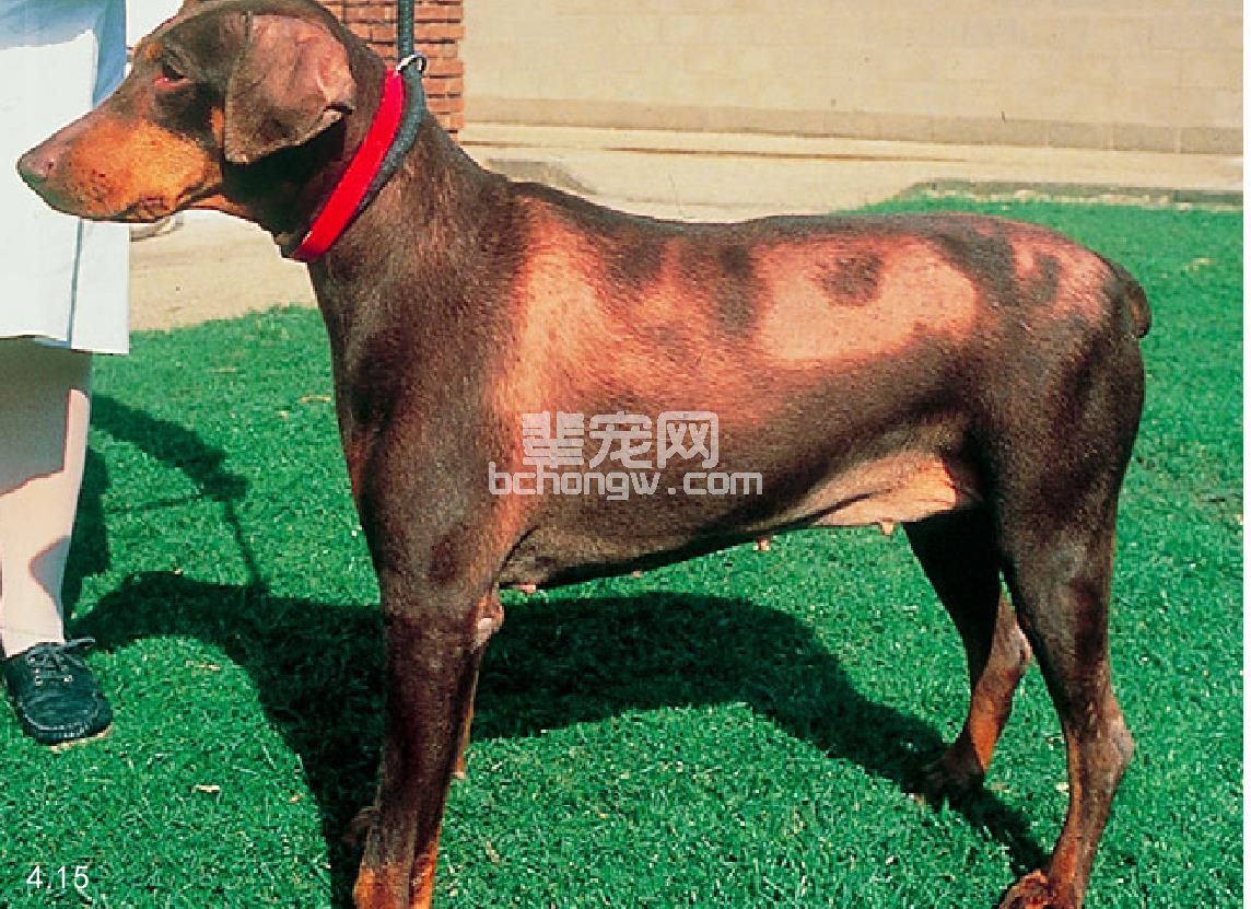 图4.15 患甲状腺功能减退导致6岁杜宾犬两侧对称性脱毛。