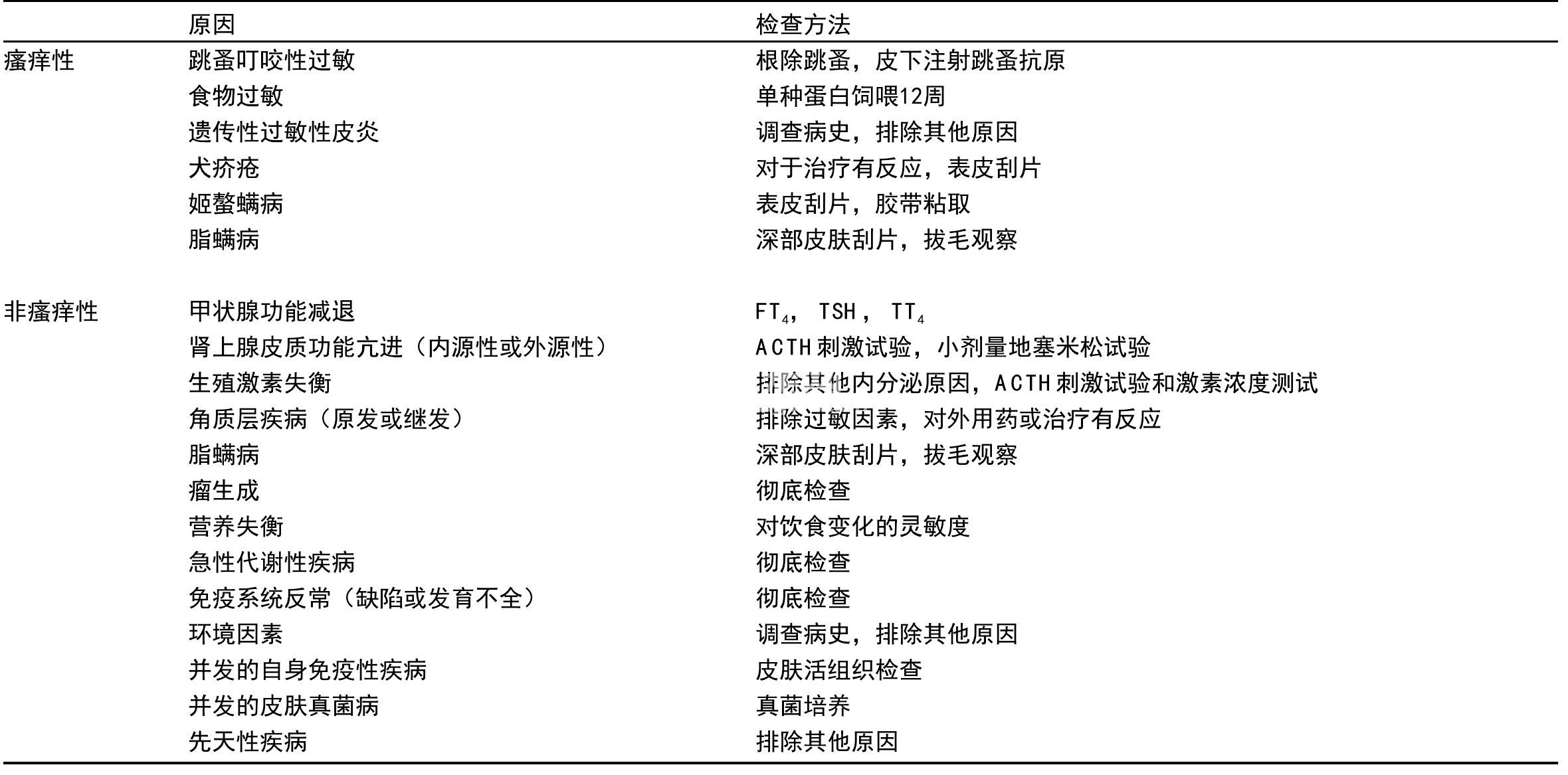诊断 (表9.2)细菌或酵母影响涂片的观察,皮肤刮片与胶带粘 片可以排除犬脂螨和厚皮马拉色菌的感染。