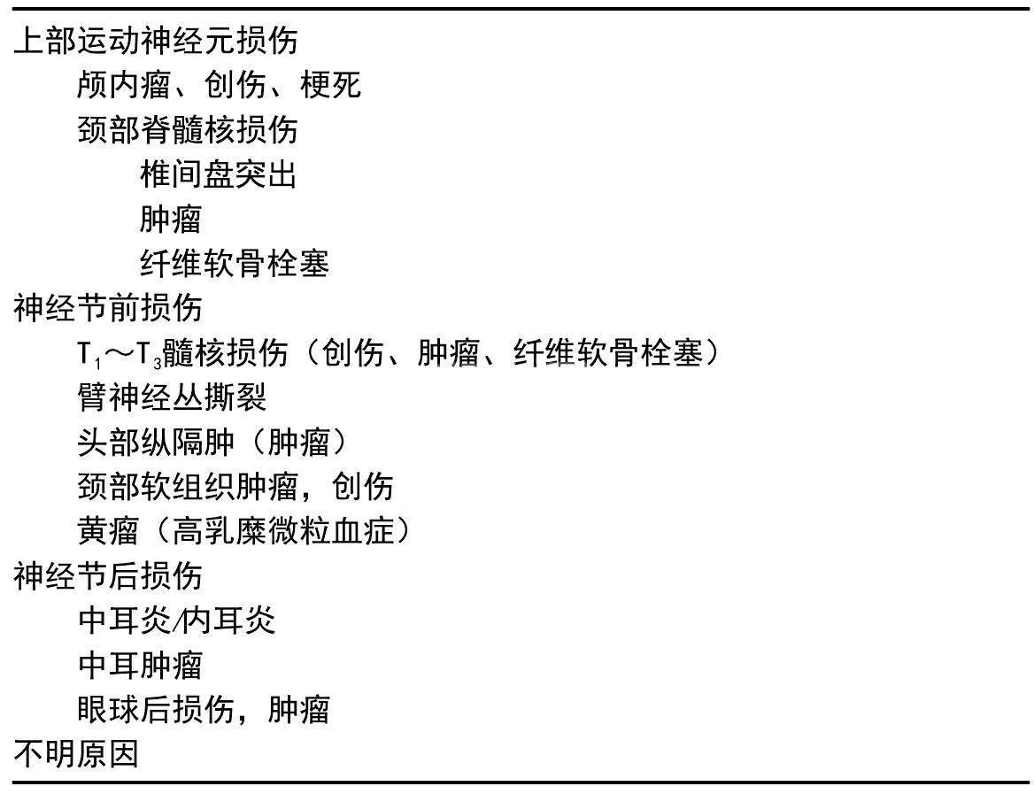 表7.8 霍纳氏综合征的常见病因