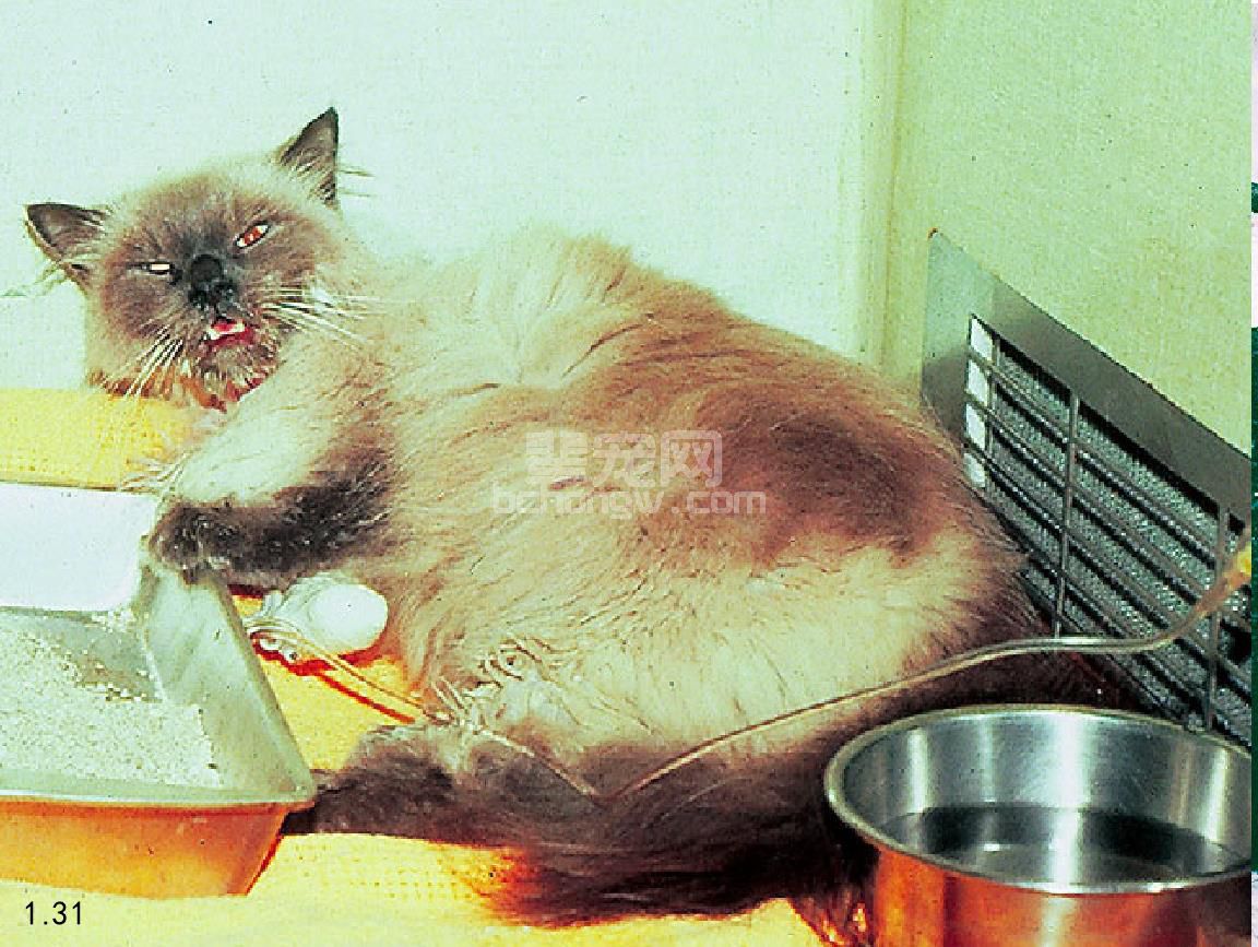 图1.31 猫博代氏菌引起猫的上呼吸道症状,这很难与引起猫的呼吸道疾 病的其他传染病相区别,如杯状病毒。